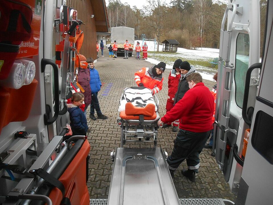 Nach dem Frühstück am Samstag wurden die wichtigsten gesetzlichen Regelungen für die Arbeit im Rettungsdienst besprochen. Anschließend fand eine Einweisung in den automatischen externen Defibrillator (AED), das Blutzuckermessen und in die Sicherheit statt. Um die Mittagszeit trafen sich die Rotkreuzler in Einsatzkleidung im Freien, um die mitgebrachten Fahrzeuge mit deren Beladung genauer unter die Lupe zu nehmen. Nach der Übung der Herz-Lungen-Wiederbelebung am Spätnachmittag forderten verschiedene Fallbeispiele das Können der Rotkreuzler. Bei gemeinsamen Spielen wurde am Abend die Kameradschaft gepflegt.