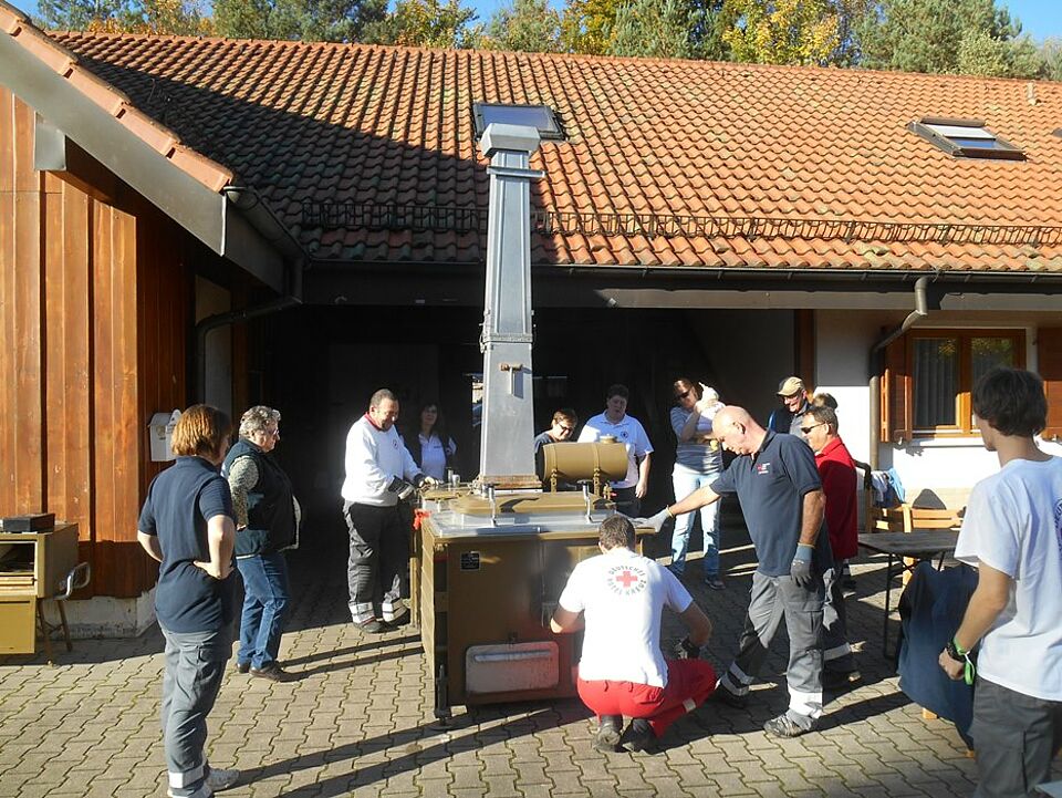 Nach Anreise am Freitagnachmittag und Abendessen widmeten sich die Rotkreuzler dem Thema "wenn es mal heiß wird". Von Referent Sven Willi vom DRK Ortsverein Gondelsheim wurden hier beispielsweise die verschiedenen Brandklassen und die Verwendung eines Feuerlöschers erklärt. Als Höhepunkt musste von jedem eine brennende Holzpuppe mit einer Löschdecke gelöscht werden. Der Abend klang bei Gesprächen gemütlich aus.
