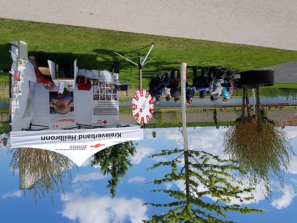 Das DRK hatte seinen Stand auf der Sommerinsel platziert, direkt am Neckar hinter dem Sommerpavillon. Hier gab es auch einen Auftritt der beiden DRK-Tanzgruppen unter der Leitung von Inge Kiesow. Bei 36 Teilnehmern war die Bühne im Holzpavillon zu klein, sodass die Gruppe kurzentschlossen im Freien auftrat.
