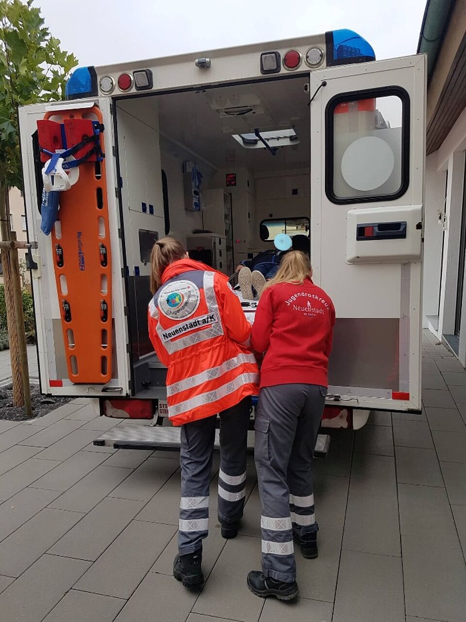 Hierfür wurde auch das Jugendrotkreuz im Kreisverband Heilbronn angefragt, um Hilfeleistungen und Retten aus Notlagen anschaulich zu gestalten. Neben dem Sensibilisieren zur Hilfsbereitschaft, wurde das Verhalten im Notfall demonstriert. Einen Notruf abzusetzen und Erste Hilfe zu leisten wurde den 18 Kindern im Alter von 6 bis 12 Jahren spielerisch vermittelt. Um ein wenig Übung zu bekommen, wurden verschiedene Verbände am Kopf und an den Gliedmaßen angelegt. Ebenso durfte jeder einmal proben einen Notruf abzusetzen. Auch ein Rettungswagen war vor Ort, sodass die Kinder einen Einblick erhalten konnten, was alles „darin steckt“. Für die Teilnehmer war es besonders spannend, alle Schubladen zu öffnen und den Inhalt zu erforschen.