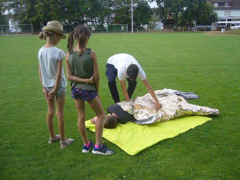 So lernten hier Groß und Klein gegenseitig voneinander, denn auch für die Schulsanitäter war es eine neue Situation: Sie standen jetzt einmal „auf der Seite des Lehrers“, konnten ihre eigenen Ideen mit einbringen und sich im Erklären üben. Sicher haben beide Seiten an diesem Tag wertvolle Erfahrungen gesammelt und neue Kenntnisse erworben.