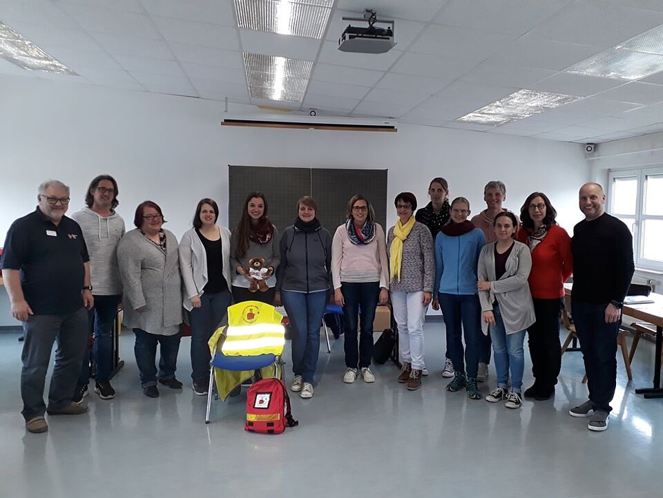 Acht Grundschullehrkräfte aus dem Kreis Heilbronn und neun weitere Grundschullehrerinnen aus anderen Landkreisen absolvierten am Freitag, den 5. April die Juniorhelfer-Fortbildung, durchgeführt von Jovin Bürchner, Koordinator für Schularbeit auf Landesebene.