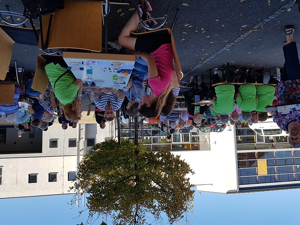 Danach ist feiern im Freien vor der Festhalle angesagt. Bei sonnigem Herbstwetter sitzen die Besucher beisammen, lauschen der Musik und lassen sich von Mitgliedern des Ortskartells verwöhnen. Die Speisen sind fast allesamt gespendet. Der Erlös kommt zum Teil dem Spendenkämmerle des DRK in Erlenbach zugute.
