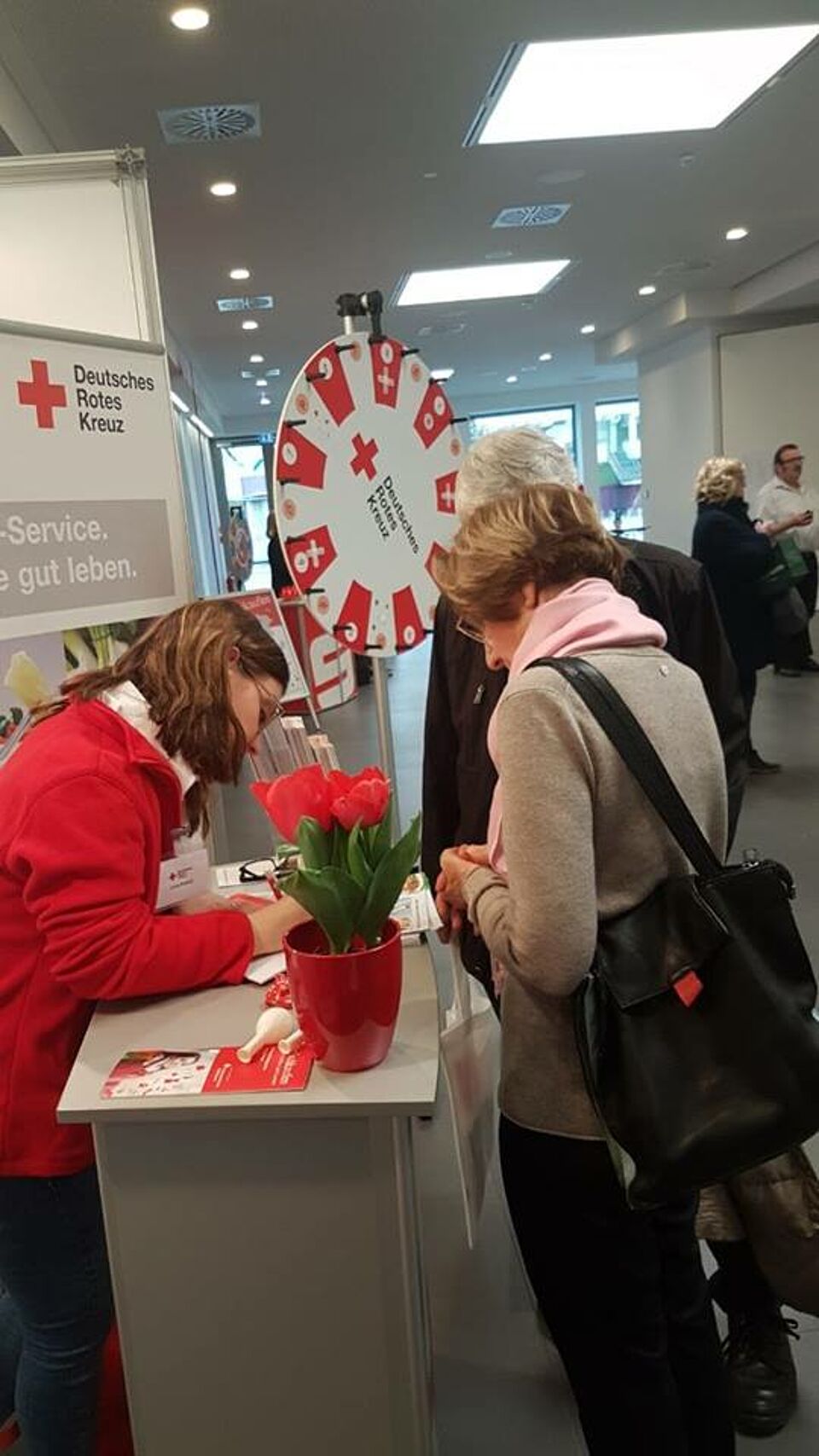 Am Messestand des DRK, im Foyer der Veranstaltungsräume, gab es wertvolle Tipps zum Thema Leben und Wohnen im Alter, dem Hausnotruf und Essen auf Räder. Ungebrochen auch das Interesse der Gäste am großen Tätigkeits-, und Wirkungsfeld der weltumspannenden Organisation. Interessierte erhielten Antworten auf ihre Fragen zu Blutspendeaktionen und Erste-Hilfe-Ausbildung.