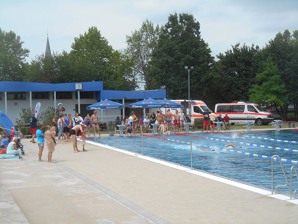 Über den ganzen Nachmittag bestand für die Besucher die Möglichkeit, einen Rettungswagen und den Bevölkerungsschutz MTW anzuschauen. Weiter wurden Getränke, Kaffee, Kuchen und Waffeln angeboten. Auch wenn an diesem Nachmittag freier Eintritt im Freibad war, kamen aufgrund des eher nicht so guten Wetter bedauerlicherweise wenige Zuschauer.