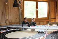 Eine neue Attraktion im Zeltlager ist die große Carrera-Bahn, die Leihgabe eines ehemaligen Betreuers.